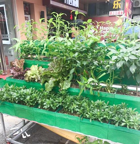 5月25日,天恒超市的前坪上,一排排绿油油的“盆栽”蔬菜吸引了大量的市民围观。原来,这是科技活动周的创新创业成果展览,而展出的就是可以种植在自家阳台、花园、屋顶种植的阳台菜园。