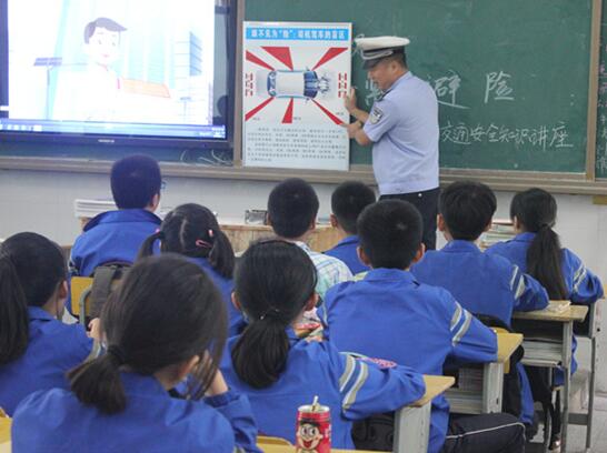 后操场上,宣传交警向该校512名学生讲解日常交通安全知识以及出行注意事项,并现场演示各种交通手势。之后,分别进入各班级进行详细讲解,教学生们辨认“交通标线”、“交通标志”、“交通信号灯”等常见交通警示标识。并发放《中学生交通安全知识》、《致家长的一封信》、《交通安全宣传警示语》等近1000份宣传资料。