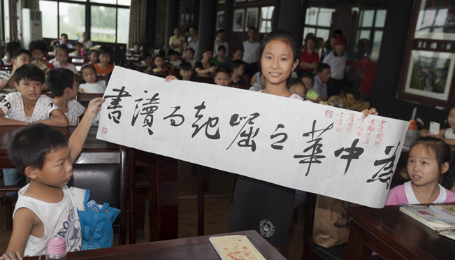 结业课上,40多名孩子一个个站得笔挺,依次吟诵《回乡偶书》、《登岳阳楼》、《过故人庄》、《枫桥夜泊》等唐代经典诗歌,稚嫩清脆的童声在课堂里阵阵回响。在近一个月的时间里,该暑期少儿国学培训班通过练习颜楷字、吟诵古诗词、学习国学经典,感恩实践和拓展培训,让孩子们对中华传统文化形成系统的认知和理解。