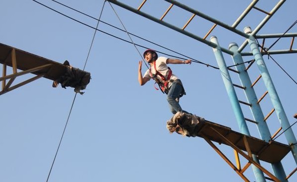 干警们分为3个小队,在拓展教练的带领下,顺利完成了包括空中断桥、孤岛求生、极速60秒等在内的多个项目。为了完成好每个项目,队员们不分职务、不分年龄、不分性别,精诚协作、群策群力,充分发挥各自的潜能,挑战自我。