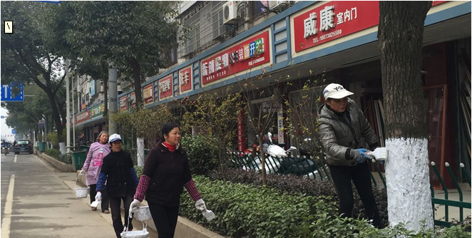 自11月20日,我市对城区主次干道、西湖公园、友谊河行道树进行冬季养护,将用生石灰、硫磺、杀虫剂、食盐、粘着剂等调配而成的“涂白液”抹于树杆,不仅能杀菌、防虫,还能防冻、防日灼。