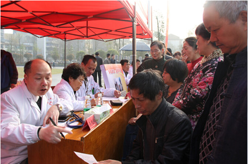 “大 妈,您的血压有点高,建议低盐饮食,平时不要做剧烈运动。”一位医生边测量血压,边叮嘱前来咨询的市民。“医生,我这肩膀变天就酸痛,有些年头了,能给看 看吗?”活动现场,不少群众围拢在咨询台前,义诊服务队的医务人员热情地为群众发放健康知识宣传资料,悉心地为群众测量血压、看病、开方,详细解答就诊群 众提出的问题,耐心指导疾病预防和治疗等注意事项。