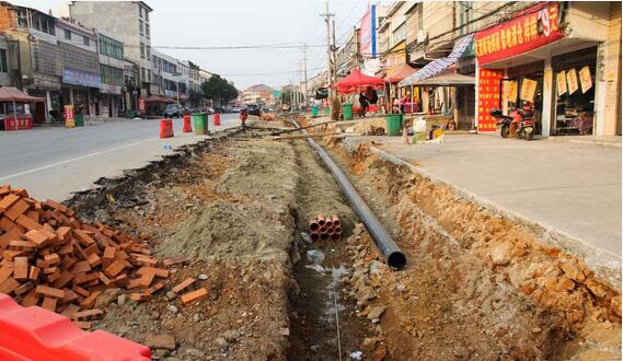 12月5日,大荆镇集镇的街道被划开了一道道“口子”,自来水等多种管道被放入。原来,为改变集镇乱搭乱建、空间环境脏乱差的面貌,大荆镇正紧锣密鼓地进行街道提质改造。