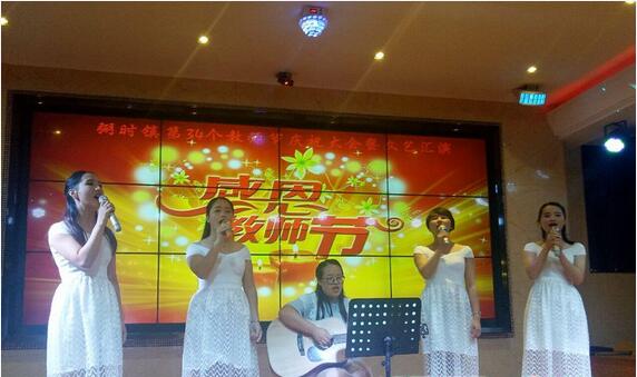 9月9日,弼时镇君悦大酒店三楼的演艺厅里歌声嘹亮,欢笑如潮,全镇300多名老师欢聚一堂,热烈庆祝第34个教师节。弼时镇党委政府主要领导、寓外乡友代表等参加庆祝。