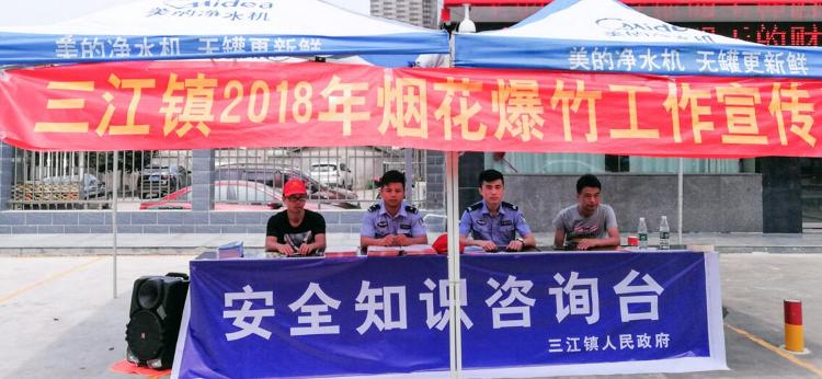 为进一步加强三江镇烟花鞭炮禁止燃放工作,目前全镇辖区内设置了禁放标识、宣传烟花鞭炮禁止燃放政策,教育、引导群众正确面对烟花鞭炮禁止燃放的认识,对不听制止的,移交三江派出所在依法处理。