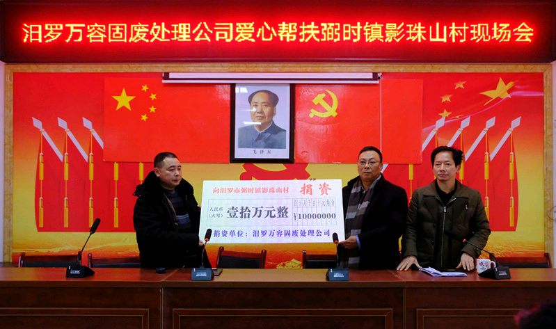 12月6日,汨罗阴雨连绵,气温持续走低,地处深山的弼时镇影珠山村更是寒意彻骨。但在村民服务中心,镇村两级和驻村帮扶干部们心里却洋溢着一股别样暖意——当天上午,汨罗市万容固体废物处理有限公司负责人一行在市交通运输局干部的带领下来到影珠山村,向村两委送上了10万元爱心捐款,帮助改善当地交通等生产生活条件。