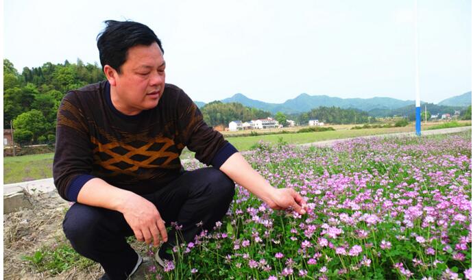 2017年,湖南省试点推广紫云英绿肥,三江镇成为试点之一。“一开始,没人感兴趣,我们就自己在县道沿线的田里撒草籽。第二年,大家发现有了这花可以不放底肥,帮忙节省40%以上的肥料,而且地里种出来的水稻发病率低、米质好,积极性一下子就高了。去年10月三江有12000亩田种了草籽,是汨罗紫云英种植面积最大的乡镇。”作为三江镇农技站站长,罗望生对这种状况感到欣喜。“绿肥加上好水,种出来的东西经得起检验。同品种的稻谷,我们三江产的就是要比别的地方贵几十元,大家争着要。”