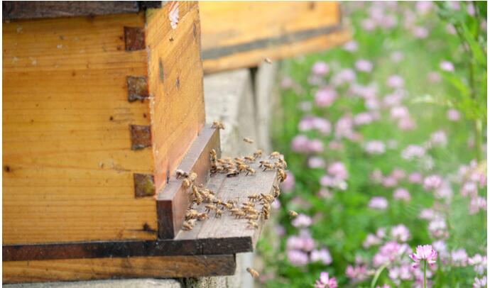 4月8日,在智峰村的一片田野上,大片的紫云英与明黄的油菜花、雪白的萝卜花一起装扮着乡村四月天。田埂上一字排开的,是八景村村民兰清峰家的50多个蜂箱。在融融春日里,蜜蜂嗡嗡穿梭在花间,牛儿悠然吃草。