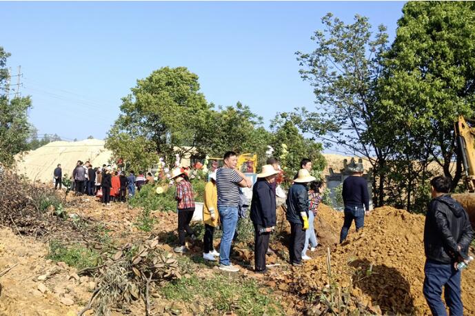 坟冢数量多、分布广,搬迁工作涉及户数多,时间紧迫,工作要怎样开展?任务下达后,两村(社区)相关工作人员迅速成立迁坟工作协调组、行动组,明确责任并制定详细的工作方案。村(社区)红白理事会、老年协会与志愿者们更是不讲条件、不问理由,纷纷投入到坟冢搬迁工作中。