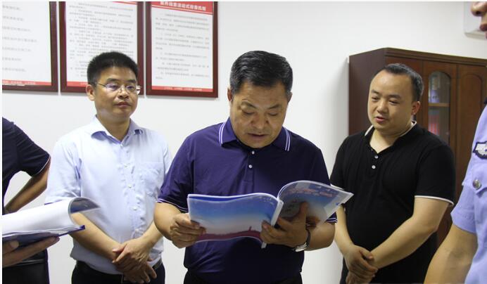 胡辉(中)查看禁毒资料台账