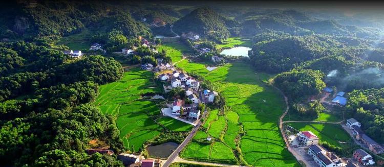 盛夏时节,汨罗市新市镇团螺村的水稻田阡陌纵横,层层叠叠,无人机从天空俯瞰,绿意盎然,远山、道路、村庄、稻田相映成趣,美不胜收,构成了一幅夏日田园风景画。
