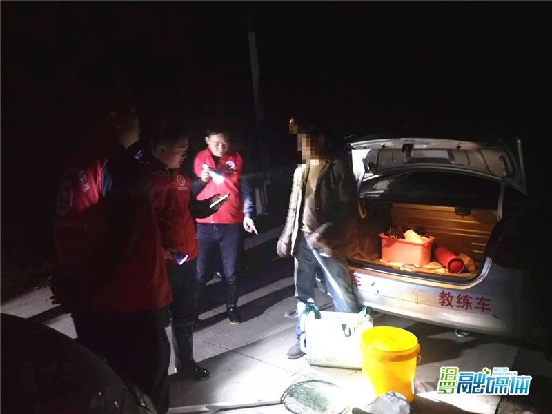 “电打鱼是违法的,请你配合。”4月2日晚21时11分,在汨罗江畔磊石垸高台点附近的一片漆黑中,一支执法队伍悄悄靠近一名头佩戴头灯、身背电瓶捕鱼器的年青男子。趁对方尚未察觉,执法人员将其团团围住。