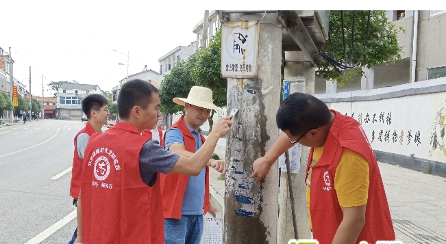 清理现场,志愿者们手拿铲子、抹布、清洁剂等工具,对墙面、电线杆、广告牌、铺面外等位置的小广告进行清除,并逐一清理破损的宣传横幅。志愿者们还向沿线居民发放倡议书,引导居民树立“人人讲文明、家家爱卫生”的良好意识。