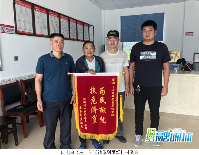 汨罗融媒体讯(记者 江博浪 通讯员 徐盛轩)“感谢党委政府、感谢扶贫干部,是你们把好的政策带给我,帮我解决实际困难。”9月7日上午,仇忠良将一面印有“为民排忧,扶危济贫”的锦旗送至古培镇雨坛村村委会以示感谢。