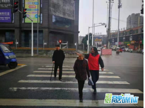 在山塘社区,社区志愿者在幼儿园下学必经路段执勤,引导车辆与行人,照顾老人过马路。以"一己之力",给社区居民撑开了安全的"保护伞",缓解了交通压力。