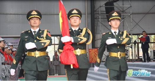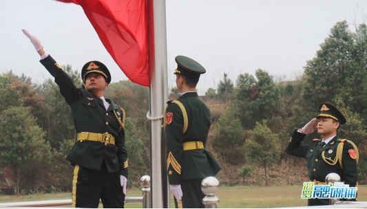 3月17日下午,在汨罗任弼时红军中学学生的集体瞩目中,擎旗手迅速有力地将国旗向空中抛出;左右两位旗手缓缓拉动绳索,五星红旗冉冉上升。2分07秒,五星红旗无比精准地升到了旗杆顶端。