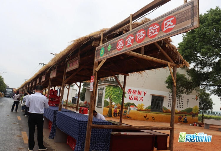 "金秋消费季"展示展销区,包括"金秋消费季"、丰收田野集市和乡村美味分享活动,游客在现场能品尝到地道的长乐甜酒、汨罗粽子、大荆荆之源葛根粉、汨罗红薯粉等特产。