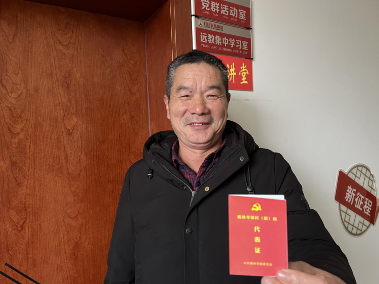 高丰村村民代表吴春林领取代表证