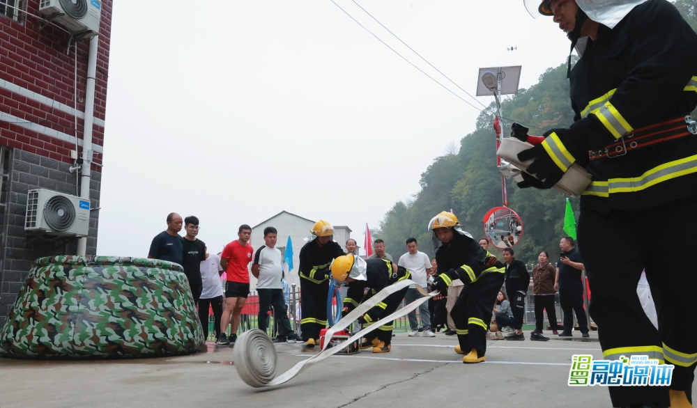 专业技能赛场气氛尤为紧张激烈。便携式水泵项目中,队员们协同配合,迅速完成水泵的组装启动,水带框手怀抱数十斤重的水带疾驰而出,“水龙”呼啸,精准击中目标;水罐消防车操项目模拟了真实火场,各乡镇(街道)的“红色战车”精准停靠,战斗员迅速穿戴好消防服,甩开水带、连接接口、布置分水器,动作一气呵成,两条水龙强力喷射,目标球应声而落,充分展现了各队伍高效的响应与处置能力。
