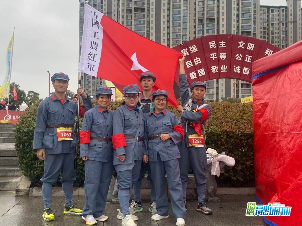 比赛当天,九名“红军战士”精神抖擞,背负冲锋号,红旗在队伍前方猎猎作响。在长达35公里的赛程中,他们并肩前行、彼此激励,共同跨越体力与意志的关卡。冲线瞬间,他们挥动旗帜,脸上写满自豪与喜悦,赢得了现场观众与其他选手的热烈掌声。