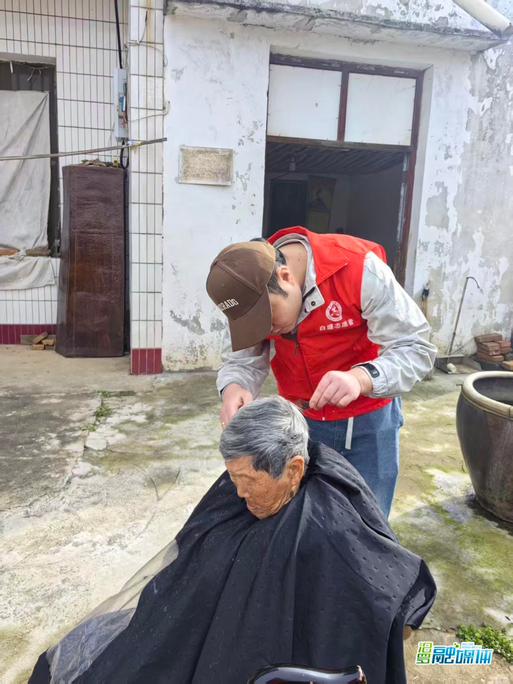 近日,白塘镇仁义村的李大爷享受了一回“专车待遇”——村里的小黄开车把他接到村部,理完发又给送回家。