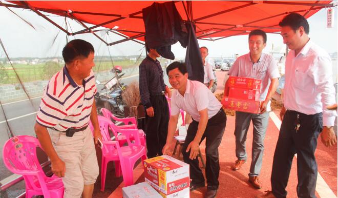 “我们希望能让一线防汛干部在防汛抢险作业时,能够有充足的水份和食品来补充体力。”人大代表一行顶着烈日,奔赴在双楚垸十里长堤上,为十个值守点的防汛人员送上凉茶、八宝粥、方便面、蚊香等物资,并叮嘱防汛干群注意保重身体。