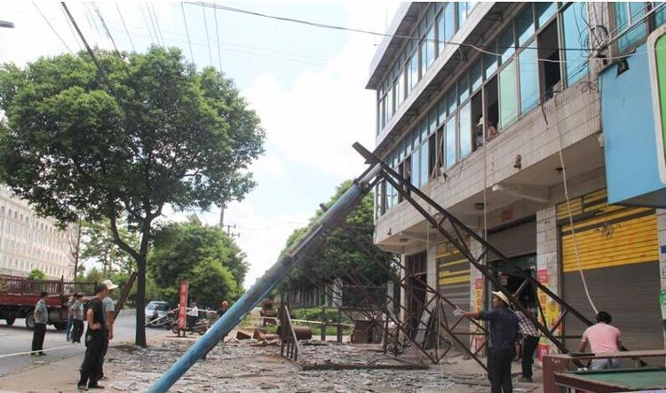 “慢一点,注意安全!”8月29日,在现场多名工作人员的协调配合下,S308新市镇团山段,一搭建在四个门面前的铁架棚被成功拆除。