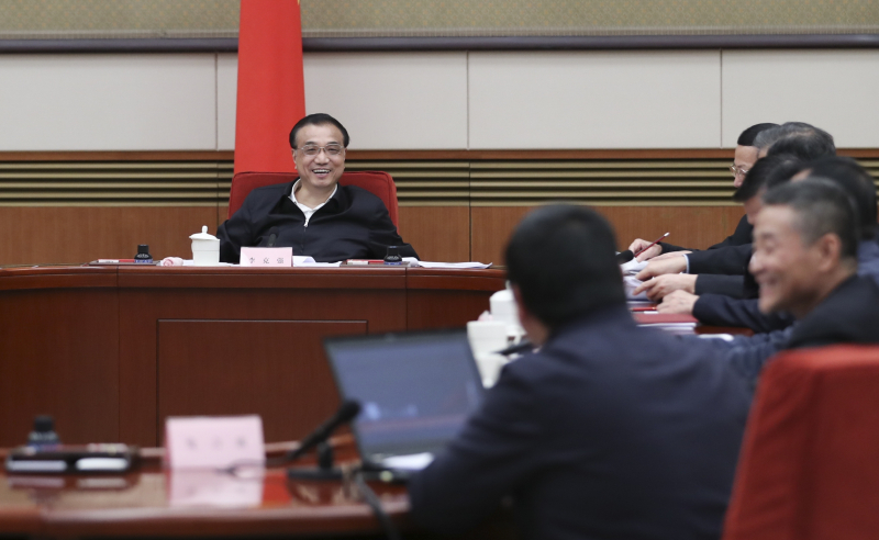 11月7日,中共中央政治局常委、国务院总理李克强在北京主持召开经济形势专家和企业家座谈会,就贯彻落实党的十九大精神、做好下一步经济工作听取意见建议。国务院副总理张高丽,中共中央政治局常委、国务院副总理汪洋出席。新华社 谢环驰 摄