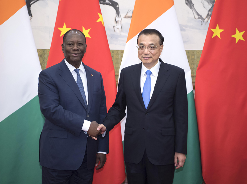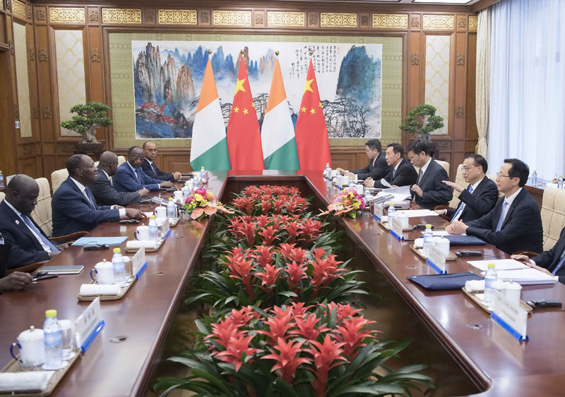 国务院总理李克强2日在钓鱼台国宾馆会见科特迪瓦总统瓦塔拉。