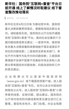 红字提醒:国务院办公厅将对收到的问题线索和意见建议进行汇总整理,督促有关地方、部门处理。对企业和群众反映强烈、带有普遍性的重要问题线索,国务院办公厅督查室将直接派员督查。经查证属实、较为典型的问题,将予以公开曝光、严肃处理。