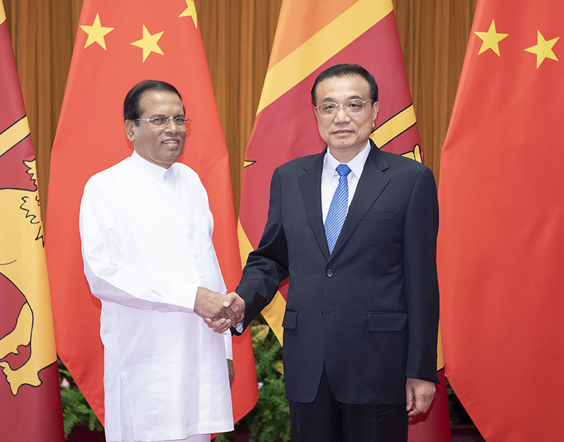 李克强表示,中斯互为重要合作伙伴,两国人民之间的友好交往跨越千年。前不久斯里兰卡发生系列恐怖袭击事件,中方对此予以强烈谴责,坚定支持斯政府和人民恢复国内安宁所作努力。习近平主席同总统先生举行了富有成果的会见,共同展望中斯关系的未来,发出积极信号。我们愿同斯方加强文明交流互鉴,在相互尊重、平等相待基础上推进互利共赢合作,巩固传统友谊,推动“一带一路”倡议同斯方发展战略对接,推进重大合作项目建设。中方愿同斯方加强在多边框架内合作,维护双方共同利益。