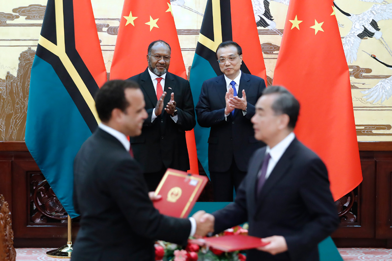 李克强指出,中方愿将“一带一路”倡议同瓦方发展战略更好对接,共商共建共享。深化在基础设施建设、经贸、渔业、旅游等领域的互利合作。中方鼓励中国企业赴瓦投资兴业,扩大进口瓦优质产品。加强人文交流合作,不断增进两国人民之间的相互了解和友谊。中方将继续在力所能及范围内向瓦方提供帮助。我们支持瓦努阿图在南太地区发挥重要作用,愿同瓦方加强在国际和地区事务中的沟通协调。中方支持瓦方明年举办太平洋岛国论坛,愿为瓦方提供必要协助。