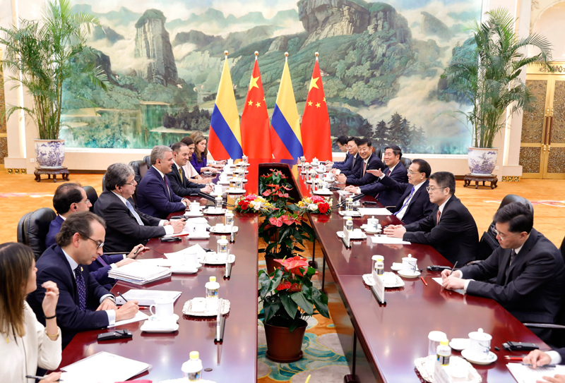 李克强表示,哥伦比亚是中国在拉美地区的重要合作伙伴。建交39年来,两国关系保持健康稳定发展,务实合作持续加强,广泛惠及双方人民。习近平主席将同总统先生举行会谈,共同规划两国关系未来发展。中方愿继续同哥方巩固政治互信,加强发展战略对接,深化各领域务实合作,推动两国关系迈上新台阶。
