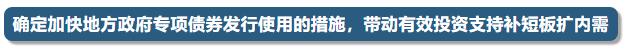 要着眼补短板、惠民生、增后劲,进一步扩大有效投资,今年限额内地方政府专项债券要确保9月底前全部发行完毕,10月底前全部拨付到项目上,督促各地尽快形成实物工作量。