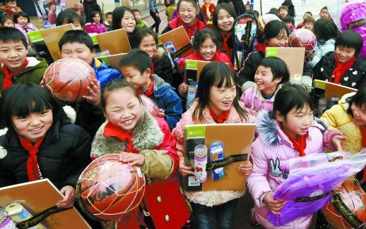 1月4日,嘉禾县珠泉镇车头中心学校,学生收到爱心文体器材欣喜万分。当日,嘉禾县多家爱心企业开展“情暖寒冬日·圆梦微心愿”活动,为边远学校贫困学生送去文体用品和御寒衣物。 黄春涛 李欣歆 摄影报道