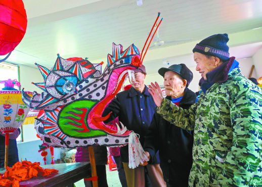 1月5日,通道侗族自治县万佛山镇更头村,村民在扎龙灯。春节临近,更头村积极组织村民进行非遗项目——断颈龙灯制作,使断颈龙灯将在春节期间如期舞动,增加浓郁喜庆气氛。