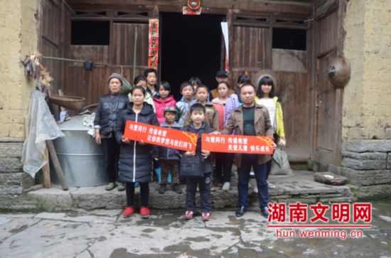 周祖辉(前排右一)和长期资助的孩子的合影。图片来源:湖南文明网