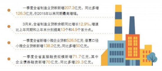 一季度全省制造业贷款新增207.3亿元,创2015年以来同期最高增幅