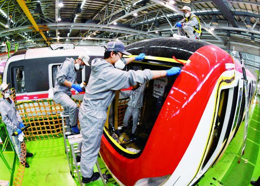 4月29日,中车株洲电力机车有限公司城轨事业部总成车间一派繁忙。该公司是我国最大的电力机车研制基地,每年可生产1000多辆城轨车辆。近年,该公司积极勇闯“一带一路”海外市场,先后将产品、服务、技术等出口到乌兹别克斯坦、巴基斯坦、新加坡等近20个国家和地区。湖南日报记者 郭立亮 通讯员 刘天胜 摄影报道