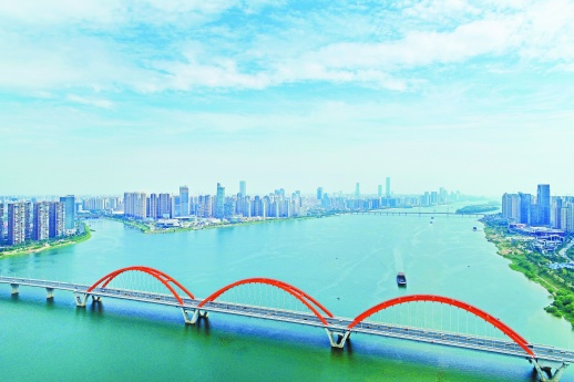 8月30日,蓝天白云下的长沙城区,空气清新洁净。截至当天,今年长沙城区空气质量优良天数累计197天,优良率超80%,PM2.5浓度与上年基本持平,PM10下降7.1个百分点,持续良好的空气质量使长沙市民“蓝天幸福感”不断提升。