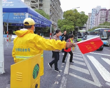 11月18日上午,行人正在韶山路和城南路路口等待红灯。记者 杨洁规 摄