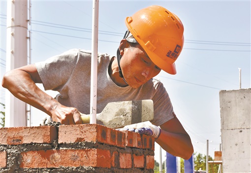 ▲4月28日,蓝山县皮具箱包科技产业园三期工地,工人顶着太阳进行施工。杨雄春 摄