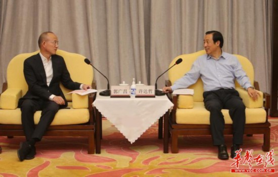 6月19日下午,省委副书记、省长许达哲在长沙与郭广昌一行举行会谈。记者 赵持 摄