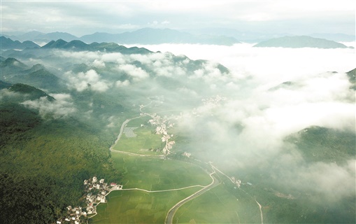 7月4日清晨,云雾萦绕下的城步苗族自治县茅坪镇金兴村如仙境般美丽。近年,该县坚持“绿水青山就是金山银山”发展理念,深入开展护绿造绿、畅通“毛细血管(河、路)”、实施垃圾分类等行动,着力改善农村人居环境,新时代的美丽乡村画卷正在苗岭大地全面展开。严钦龙 杨科 摄影报道
