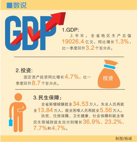 7月17日,省统计局发布2020年湖南经济“半年报”,根据统一核算,上半年,我省地区生产总值(GDP)19026.4亿元,同比增长1.3%,比一季度回升3.2个百分点。
