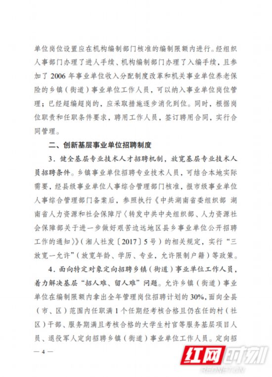 《意见》明确,鼓励高校毕业生到基层工作,引导专业技术人员服务基层,规范基层事业单位人员调配。