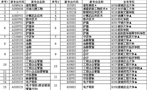 根据《湖南省高等教育自学考试专业调整方案(2018年)》,自2019年起,除不再办理毕业证书的专业及个别特殊专业外,我省绝大部分开考专业均按照教育部《高等教育自学考试开考专业清单》中对应的新的专业名称及代码办理毕业证书。见: