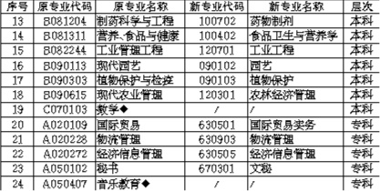 注:原专业名称栏中标注了“◆”的专业为无法调整对应到教育部《高等教育自学考试开考专业清单》的专业。