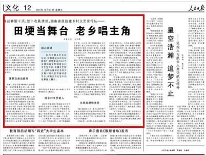 娄底市文旅广体局局长袁华荣介绍,宣传队很注重发掘基层文艺能人,“文艺主力们热爱文化活动,有热情、有干劲、有活力,通过他们以点带面,感染发动更多村民加入,文艺演出才能更有特色。”袁华荣说。