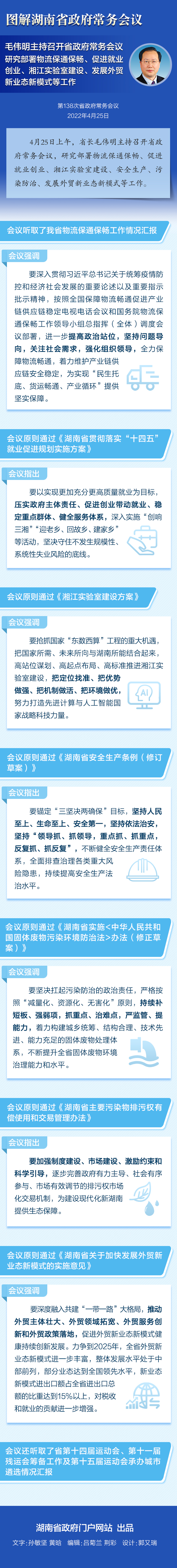 【图解】4月25日省政府常务会议:研究部署物流保通保畅、促进就业创业、湘江实验室建设、发展外贸新业态新模式等工作